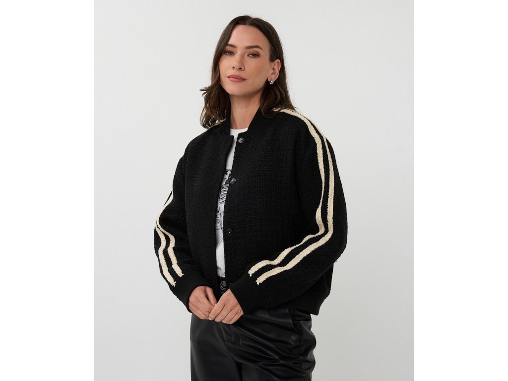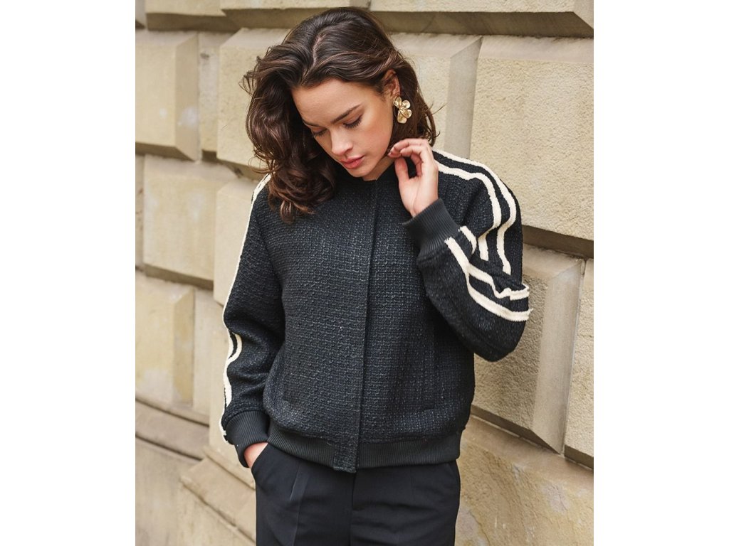 Stylový bomber ve stylu Chanel zaujme svou originální kombinací sportovní ležérnosti a elegance.