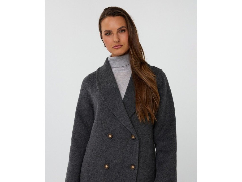 Elegantní kabát s reversovým límcem a dvouřadým zapínáním je kouskem, který nikdy nevyjde z módy. Díky složení s 50 % vlny je příjemně hřejivý, ale zároveň lehký, protože je nepodšitý – ideální na přechodné období. Na bocích najdete dvě praktické kapsy, které podtrhují čistý, minimalistický vzhled.