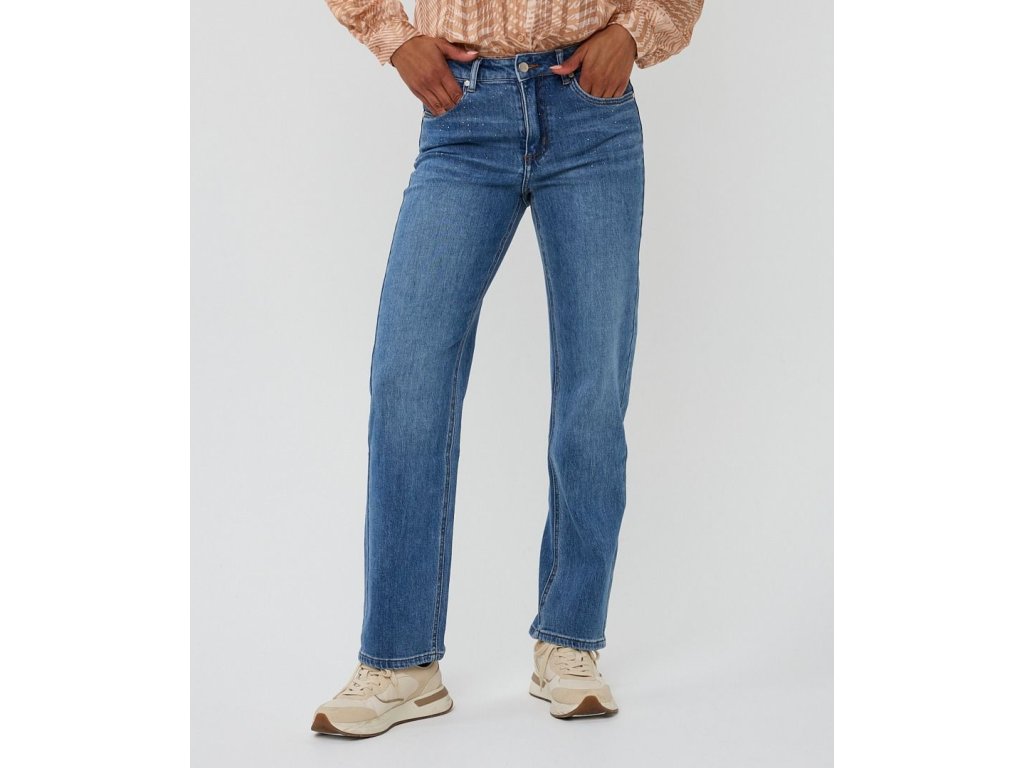 Klasika, která nikdy nezklame! Rovný střih (straight) je pohodlný a nadčasový – sluší každé postavě a skvěle se kombinuje. Na přední straně v oblasti boků najdeš zdobení kovovými kamínky, které džínům dodává šmrnc a originální vzhled.