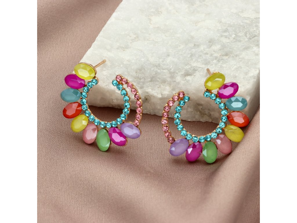 Štrasované náušnice E98789 - mix barev