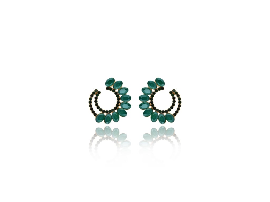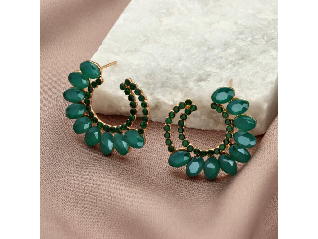 Štrasované náušnice E98790 lahvově zelené