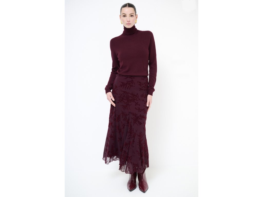 Sukně tyl s květy - vínová