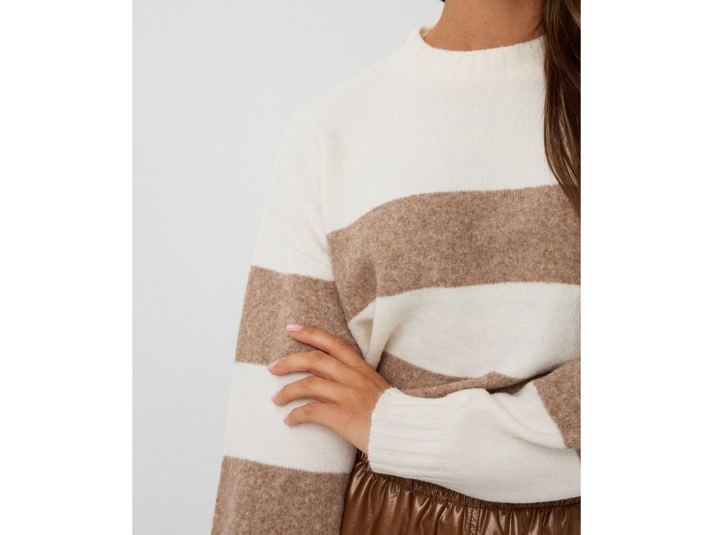Svetr s pruhy - béžovo-krémový