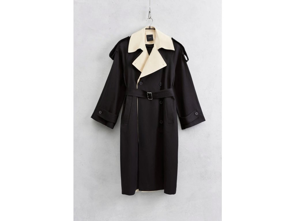Trenčkot černý s odnímatelým smetanovým límcem a klopami